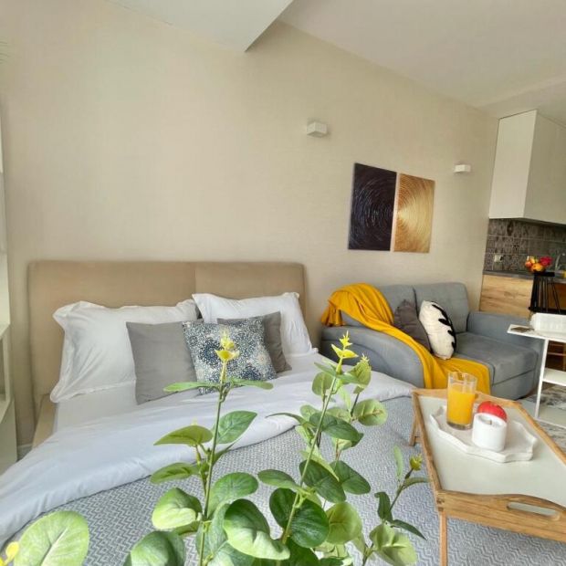 Двухместные апартаменты с красивым видом из окна двуспальная кровать