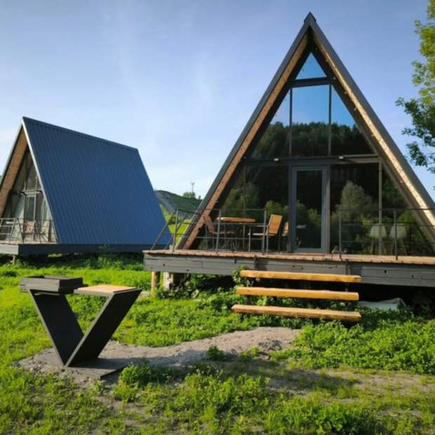 Услуги Шале двухэтажный А-фрейм с панорамным остеклением и террасой