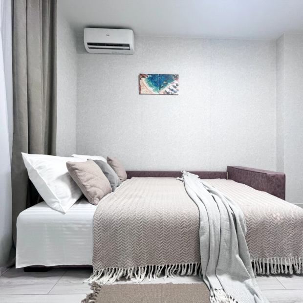 Студия с балконом и с красивым видом из окна