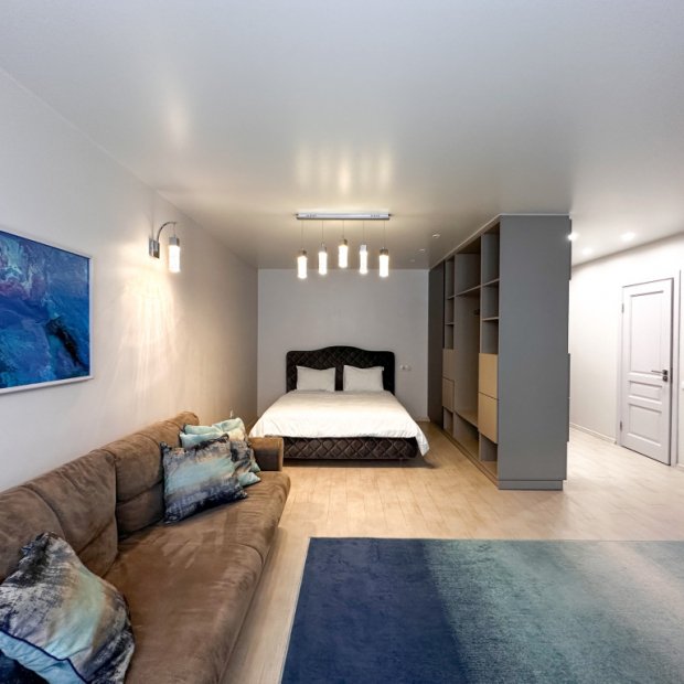 Студия с балконом и с красивым видом из окна