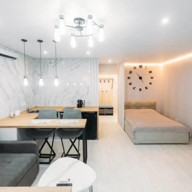 НЮР| Премиум ремонт| ЖК TV| 3 человек| Бесконтактное заселение| Отчетные документы| Бесплатные уборки| Wi-Fi| Мини-бар| Можно с детьми и животнымиАпартаменты студия на 5 этаже Гостиничный сервис|…