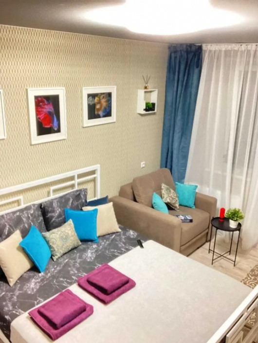 Дизайнерская студия в центре города предлагается как квартира посуточно в г.Челябинске!Стильный продуманный интерьер, раскрашенный всевозможными оттенками лилового и фиолетового цветов, удобная д…