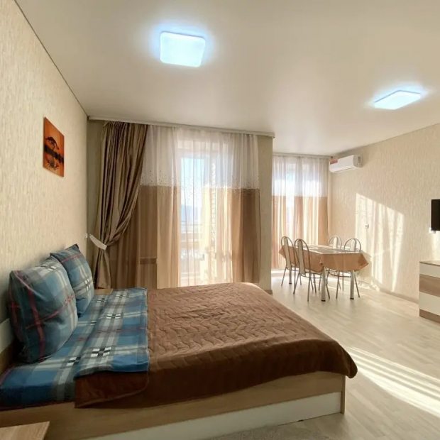 Двухместная студия с балконом и с красивым видом из окна двуспальная кровать