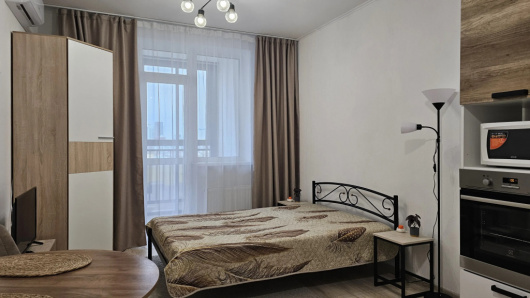 Студия с балконом и с красивым видом из окна