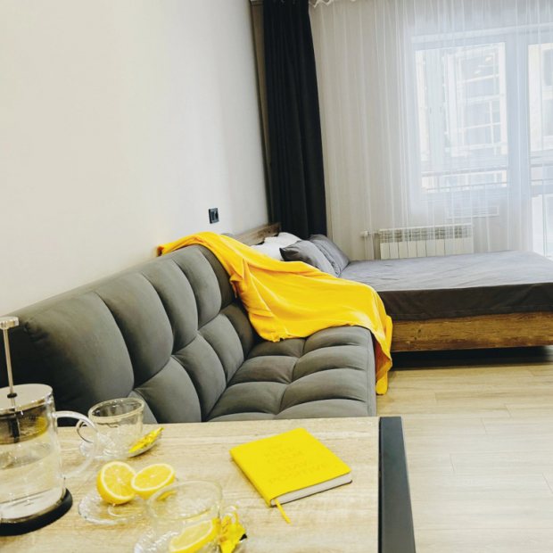 Студия с балконом и с красивым видом из окна