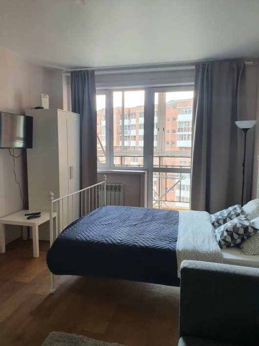 Студия с балконом и с красивым видом из окна