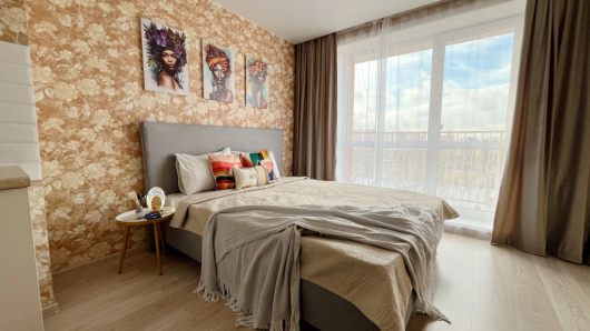 Двухместная студия с балконом и с красивым видом из окна двуспальная кровать