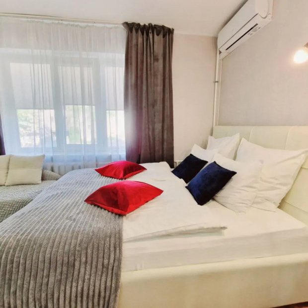 Подходящий вариант для большой компании: апартаменты «Апартаменты Двухкомнатные Центр, площадь Победы, Галицкого 19, Колибри#19» находятся в Калининграде. Эти апартаменты располагаются 1 км от центра города. Рядом с апартаментами — Калининградский филиал государственного центра современного искусства, Борющиеся зубры и Калининградский областной драматический театр. На территории работает бесплатный Wi-Fi. Уточняйте информацию сразу при заезде. Для путешественников на машине организована бесплатная парковка. Если вы путешествуете на машине, припарковаться можно будет на парковке рядом. Чтобы забронировать экскурсию, обратитесь в экскурсионное бюро апартаментов. Чтобы путешествие было не только приятным, но и удобным, гости могут заказать трансфер. Гостям доступны и другие услуги. Например, индивидуальная регистрация заезда и отъезда и гладильные услуги. Персонал апартаментов говорит на английском и русском. В номере вас будут ждать телевизор. Перечисленные услуги есть не во всех номерах.