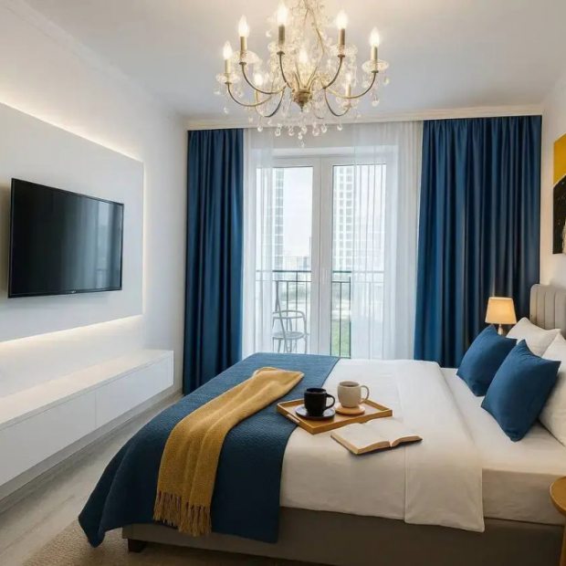 Апартаменты с 2 комнатами с балконом и с красивым видом из окна