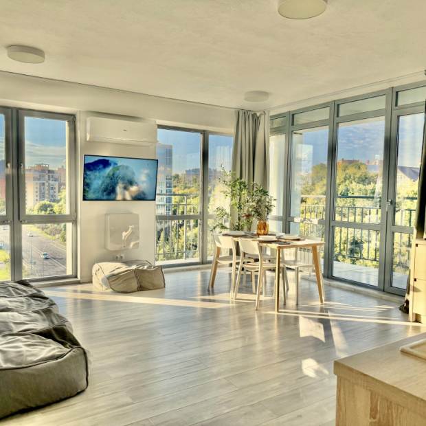 Шестиместные апартаменты с 4 комнатами с балконом и с красивым видом из окна
