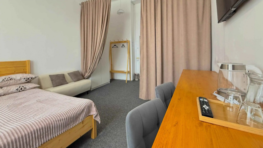 Расположен в 10 км от аэропорта Хабаровск-Новый. К услугам гостей 7 номеров различной ценовой категории. Из окон открывается вид на город. Гости пользуются общей ванной комнатой. Стойка регистрации работает круглосуточно.
