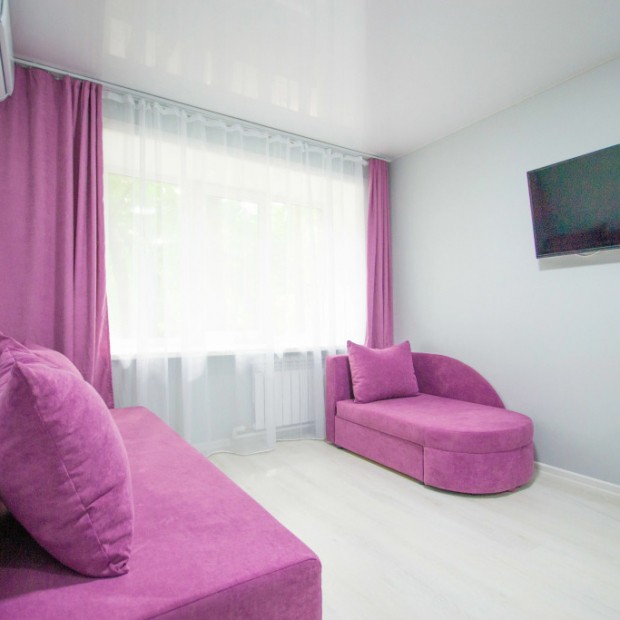 Расположена в городе Хабаровск. Квартира расположена на первом этаже пятиэтажного дома, без балкона, комнаты смежные.Каждая квартира укомплектована:двуспальной кроватью;двуспальным диваном;телеви…
