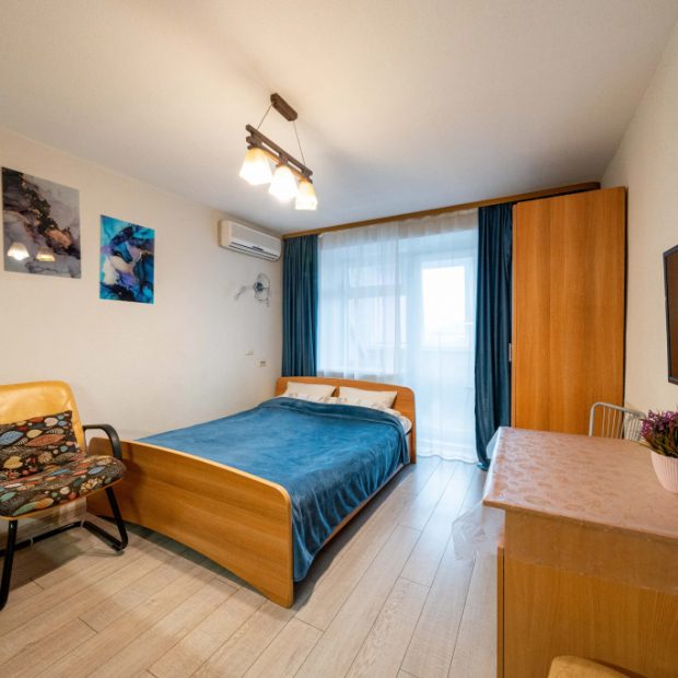 Двухместная студия с балконом двуспальная кровать