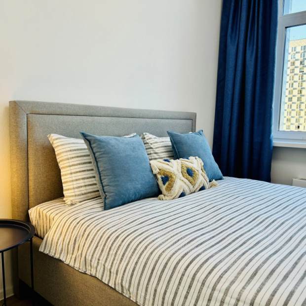 Квартира «уютная евро-трёшка в 3 минутах от метро» находятся в Котельниках. Эти апартаменты расположены в пешей доступности от центра города. Квартира расположена в жилищном комплексе «Оранж Парк» у метро «Котельники». Рядом с домом расположен Кузьминский лесопарк, где можно прогуляться, а зимой покататься на лыжах. В шаговой доступности продуктовые магазины и супермаркеты, кафе, пекарни, парикмахерские, пиццерии. В квартире возможно проживание 6 человек. Работает Wi-Fi. Территория жилищного комплекса закрытая, охраняемая, без машин и с детскими/спортивными площадками. В квартире представляются: ортопедическая двуспальная кровать 160х200 см, ортопедическая двуспальная кровать 140х200, двуспальный диван 150х200, шкафы, телевиденье с функцией Smart TV, 2 кондиционера, гладильная доска, утюг, сушилка, постельное бельё, комплект полотенец. На кухне есть индукционная плита, микроволновая печь, чайник, холодильник, посудомойка, набор посуды в едином стиле и все необходимые принадлежности для приготовления пищи, чай/сахар, растительное масло. Ванная комната состоит из ванной, стиральной машины, фена, предоставляется шампунь, гель для душа, мыло в дозаторах, капсулы для стирки.