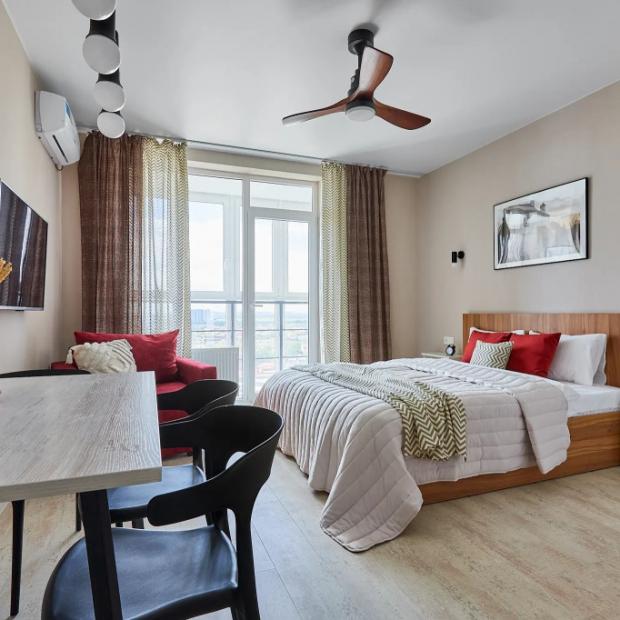 Двухместная студия с балконом и с красивым видом из окна двуспальная кровать