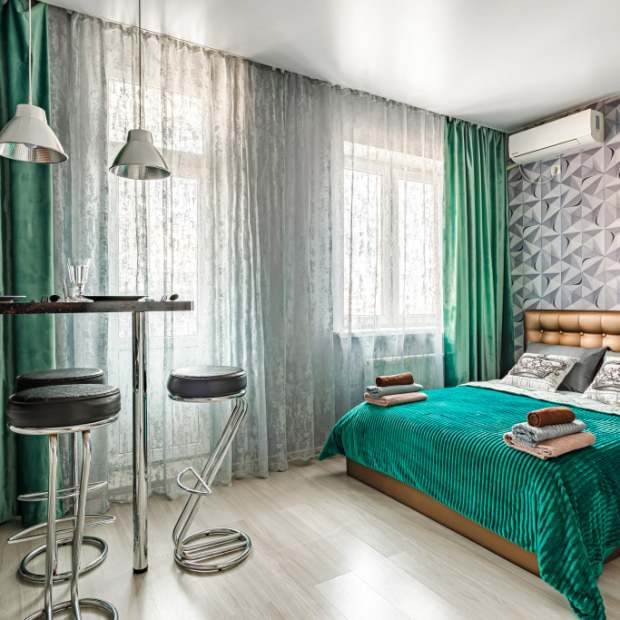 Студия с балконом и с красивым видом из окна