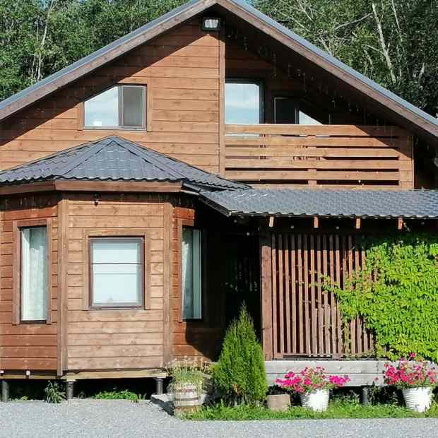 Частный дом «В Карелии» расположен в Лахденпохье. До Ладожского озера 850 м. В шаговой доступности — продуктовые магазины, рынок с фермерскими продуктами, пиццерия и кафе. Возможна доставка из магазинов. В окружении дома нет проезжих дорог и городской суеты. Тут же рядом доступны Ладожские шхеры и озеро. Неподалёку можно найти самые грибные и ягодные места в этом регионе. Город Сортавала в 41 км. Также гости могут посетить Долину Водопадов, верёвочный парк, ферму Осликов, гору Филина, остров Валаам, горный парк Рускеала и городище Паасо. Возможно проживание до 6 человек. В коттедже есть гостиная с дровяным камином и выходом на веранду. На кухне-столовой имеются газовая плита, посудомоечная машина и необходимая посуда. Окна кухни выходят на детскую игровую зону на улице. Ванная комната оборудована душевой с эффектом дождя, раковиной, стиральной машиной. Санузел совмещённый. На втором этаже расположены две изолированных спальни и проходная комната с диваном и креслом-качалкой. Одна из спален имеет выход на балкон. Для семей с детьми предоставляются детский стульчик с 0 до 3-х лет, кровать-манеж, детский шезлонг. Во дворе имеются детские качели, тарзанка для детей постарше, качеля-гнездо, а также двухэтажный детский домик с горкой и скалодромом. Оборудована мангальная зона, есть тандыр. В летний период будет установлен бассейн.