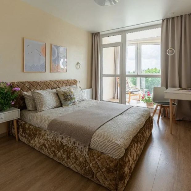 Апартаменты с 2 комнатами с балконом и с красивым видом из окна