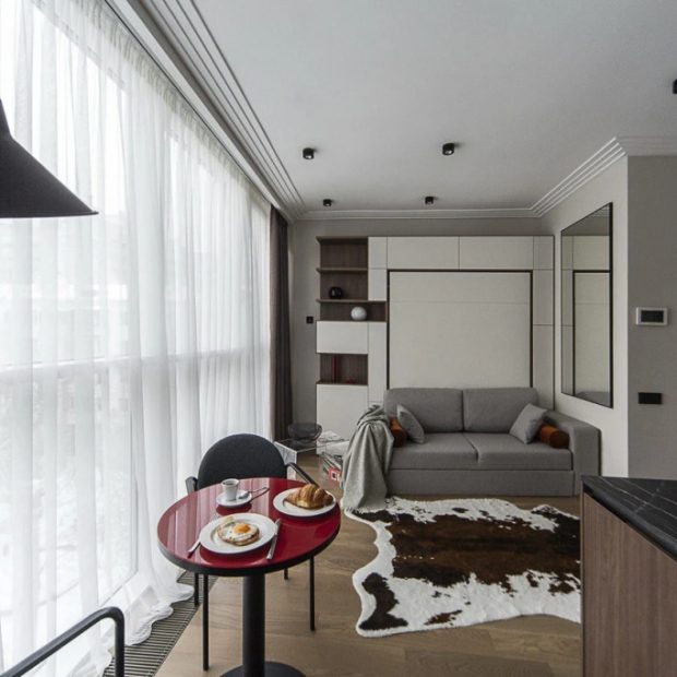 Апартаменты Nova на Тверской располагаются в Москве, в доме бизнес-класса с услугой консьержа. В шаговой доступности — станция метро, центральная улица, концертные залы, театры, парки, рестораны, музеи, медицинские учреждения, Белорусский вокзал и терминал «Аэроэкспресс» аэропорта Шереметьево. Студия площадью 22 кв. м с панорамными окнами оснащена двуспальной кроватью, раскладным креслом, Smart TV, Wi-Fi, кондиционером. Кухня оборудована необходимой техникой и посудой. Имеется стиральная машина, утюг и фен.