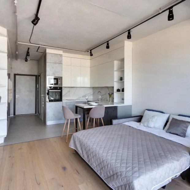 Студия с балконом и с красивым видом из окна