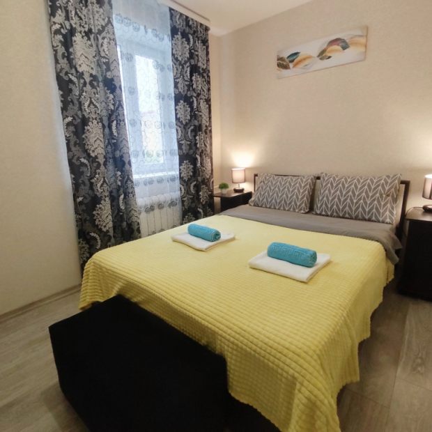Однокомнатная квартира, полностью оборудованная всей мебелью и бытовой техникой, два отдельных спальных места: 2-х спальная кровать и диван -кровать ширина спального места 120 см..Центральная час…