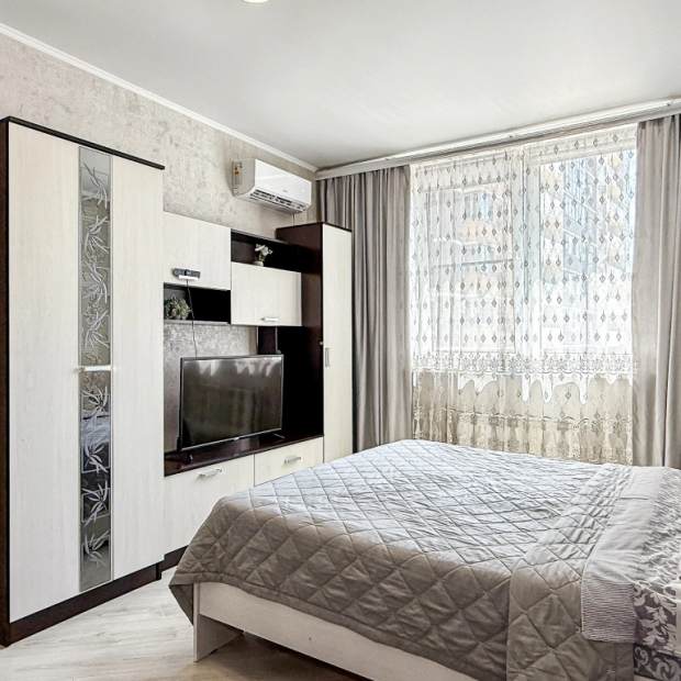Современная квартира-студия в самом центре города с восхитительным видом на море!Расчетный час (время отъезда) - 12:00. Время заселения 15:00 - 23:00.Лиц моложе 23 лет не заселяем!Звонки и сообще…