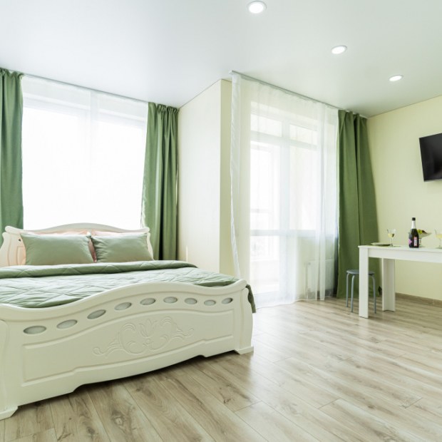 Двухместная студия с балконом и с красивым видом из окна двуспальная кровать