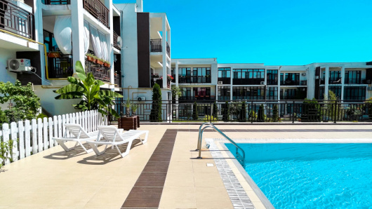 «Апартаменты с видом на море в Южном районе» расположены в Новороссийске, в экологически чистом Южном районе. Расстояние до пляжа Мысхако составляет 4 км, расстояние до пляжа Алексино составляет 5 км. Территория апартаментов огороженная и зелёная, имеется бесплатная гостевая автопарковка на территории. Во дворе расположен сезонный открытый бассейн без подогрева, который работает со второй половины июня по начало сентября. Бассейн обслуживается специальной организацией по графику, имеются санитарные дни. Доступ в бассейн бесплатный для гостей, вход по чипу для защиты от случайного попадания детей и посторонних, имеются шезлонги. В апартаментах имеется балкон в номере с частичным видом на море и горы, на котором имеется уличная мебель. Также установлен телевизор Smart TV. Допускается размещение с небольшими собаками, но прогулки с животными разрешены только за пределами территории.