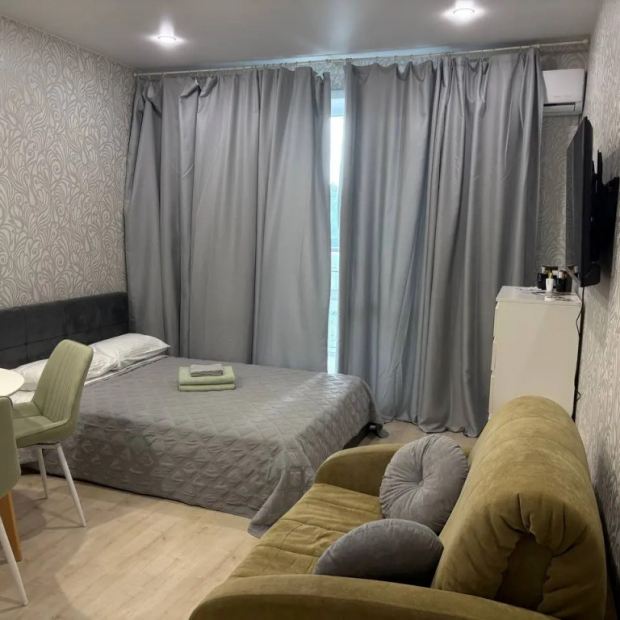 Апартаменты «Уютная студия в Академгородке» находятся в Новосибирске. В шаговой доступности — военное училище, медицинские учреждения, научные институты, бассейн, спортивные клубы. Рядом расположены остановки общественного транспорта, магазины, аптеки, детские площадки. В транспортной доступности находятся клиника Мешалкина, технопарк, торгово-развлекательный комплекс, университет, станция «Сеятель». Для прогулок доступны водохранилище, ботанический сад, парковые зоны. Апартаменты рассчитаны на трёх человек. Имеются кровать с ортопедическим матрасом, кресло-кровать. Установлены кондиционер, телевизор, высокоскоростной Wi-Fi. Кухня оборудована микроволновой печью, холодильником, плитой, духовым шкафом, электрочайником, кофемашиной, комплектом посуды. Ванная комната оснащена стиральной машиной, водонагревателем. Предоставляются постельное бельё, полотенца, средства гигиены, фен, утюг, гладильная доска, сушилка.