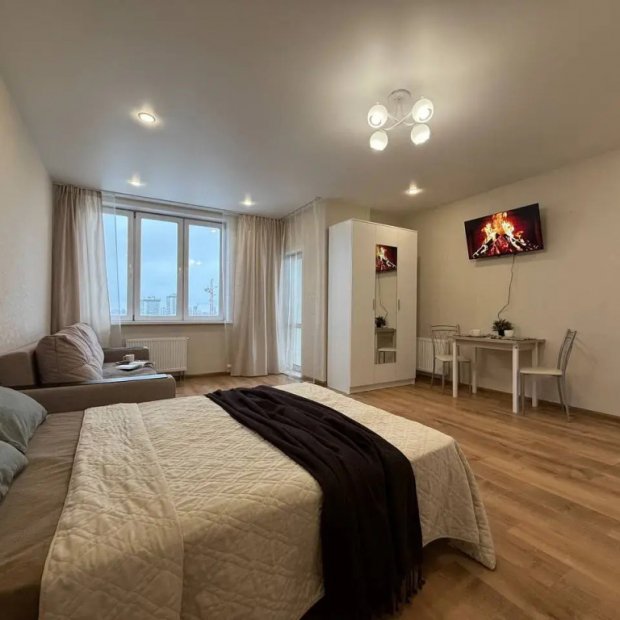 Студия с балконом и с красивым видом из окна