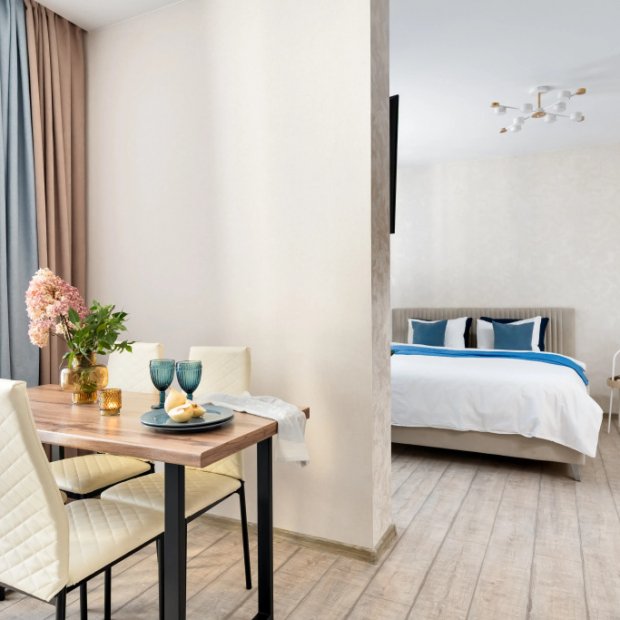 Двухместная студия с балконом двуспальная кровать