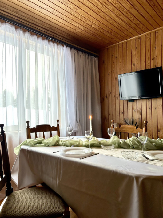 Активный или пассивный отдых — выбор за вами. Коттедж «Частный дом Семейный с камином Гнездо» располагается в Орехово. Этот коттедж находится в 4 км от центра города. Рядом с коттеджем можно прогуляться. Неподалёку: Озеро Борково, Норвежский парк и Государственый природный заказник Ореховский. Если вы путешествуете на машине, припарковаться можно будет на парковке рядом. Любителям спорта подготовили тренажёрный зал и настольный теннис. В путешествие можно взять питомца. Возможно размещение с домашним любимцем за дополнительную плату. А ещё в распоряжении гостей гладильные услуги. Персонал коттеджа говорит на русском. В номере вы найдёте телевизор. Перечисленные услуги есть не во всех номерах.