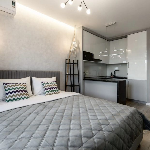 Двухместная студия с балконом и с красивым видом из окна двуспальная кровать