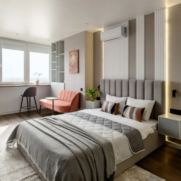 Двухместная студия с красивым видом из окна двуспальная кровать
