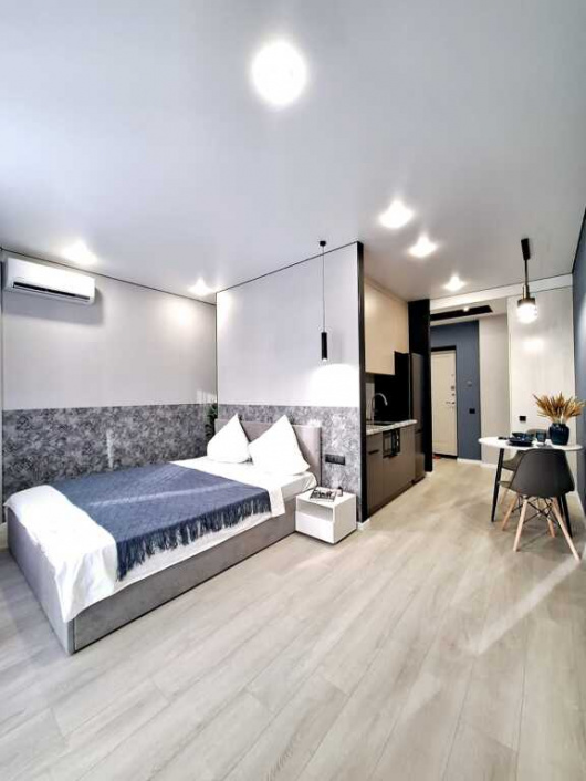Студия с балконом и с красивым видом из окна