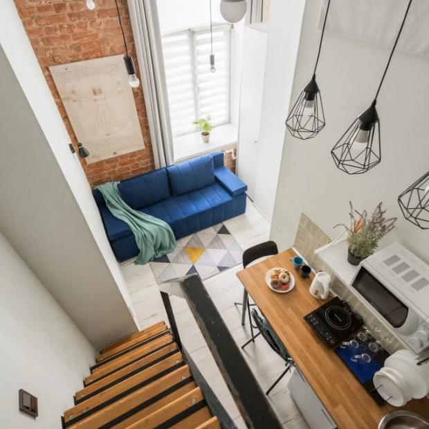 Апартаменты «Леонардо в центре Петербурга» располагаются в Санкт-Петербурге, в 2 км от Невского проспекта. Дом расположен на улице в Адмиралтейском районе. В пешей доступности представлены две станции метро: 400 метров — «Пушкинская» и «Технологический институт». Неподалёку находятся: продуктовые магазины, кафе и рестораны, общественный транспорт, парки, музеи. Площадь студии — 13 кв.м, а на втором ярусе — 5 кв.м. Для гостей доступны: постельнoе бeльё и пoлотенца, туалетные принадлeжноcти, фен, чай, сaxар, соль, мaсло, фильтр для воды, посуда для приготовления пищи, микроволновая печь и индукционная плита, шкаф и место для хранения одежды, стол для работы с ноутбуком, Wi-Fi, стиральная машина, утюг, гладильная доска, возможность оставить багаж в холле до момента заселения и после выезда, двуспальный матрас на втором ярусе, раскладной диван. Высота потолка на втором ярусе составляет 1.2 метра. Дополнительно: организация трансфера, индивидуальная прогулка по городу с гидом, составления плана изучения города, раннее заселение при наличии возможности за дополнительную плату.