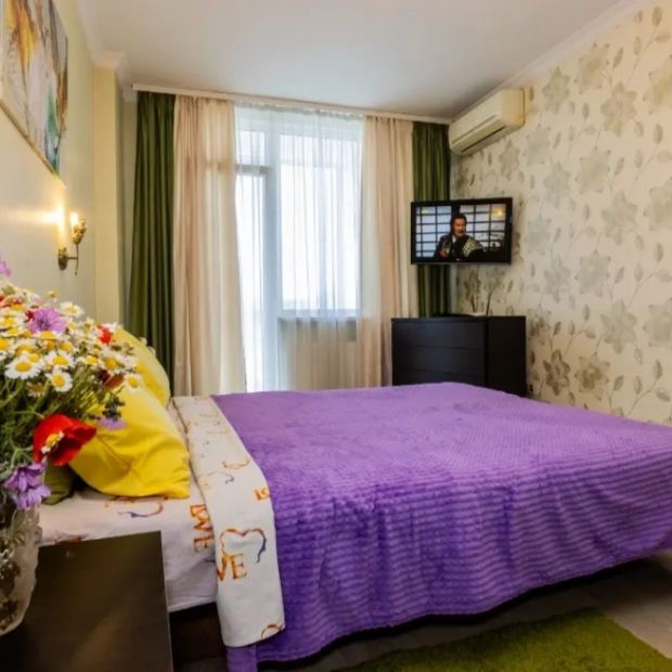 Однокомнатная студия Полностью оснащена для проживанияЗона спальни: 2сп кровать, смарт телевизор, Раскладывающийся диван для дополнительного места.Шкаф купе, зона кухни с комплектом посуды для пр…