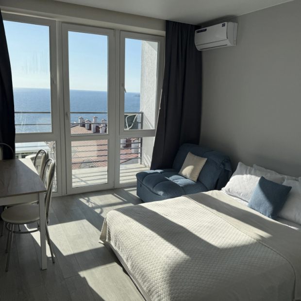 Квартира на Фиолентовское шоссе, 134к5 находится в Севастополе, на мысе Фиолент, в комплексе с видом на море. Квартира подойдёт для романтических поездок и семейного размещения. В распоряжении гостей окна с видом на море и балкон. Кухня оборудована техникой и кухонной утварью для самостоятельного приготовления блюд. Ванная комната с принадлежностями. Проживание с собаками некоторых пород возможно по предварительному согласованию и за дополнительную плату. На территории комплекса есть бесплатная парковка, детская площадка, видовые качели, мангальная зона.