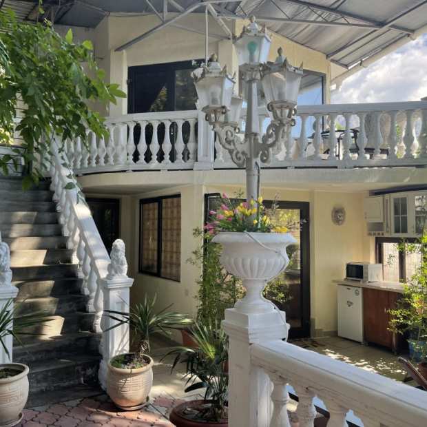 Частный дом «Стиль Белого Льва» находится в Симеизе, в 100 м от моря. Здание-памятник расположено в реликтовом парке, в пешей доступности от береговой линии. Неподалёку находятся кафе и бесплатный пляж. Закрытая территория оформлена в стиле итальянского дворика с зонтами и столиками для каждого номера, под сенью 300-летней сосны. Дом рассчитан на размещение 8–12 человек и оборудован для долгосрочного проживания: отдельные спальни, закрытый двор. Подходит для семей с детьми или нескольких поколений. Территория охраняется собакой породы Бернский Зенненхунд.