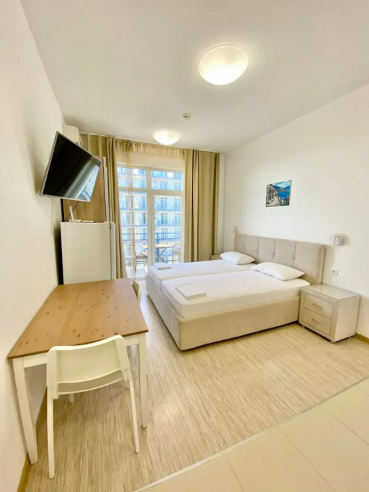 В поисках домашнего уюта: апартаменты «Апартаменты в Имеретинском» находятся в Сириусе. Эти апартаменты располагаются в пешей доступности от центра города. Рядом с апартаментами можно прогуляться. Неподалёку: Пляж Мзымта, Пляж Мандарин и Пляж Олимпийский. Wi-Fi на территории поможет всегда оставаться на связи. Если вы путешествуете на машине, припарковаться можно будет на бесплатной парковке. Если вы путешествуете на машине, припарковаться можно будет на парковке рядом. Любителям спорта подготовили настольный теннис. В апартаментах для поклонников зимних спортивных развлечений есть следующие услуги: катание на лыжах. Среди развлечений на территории — площадка для пикника и площадка для барбекю. Любители водных процедур оценят бассейн и открытый бассейн. Любимца не придётся оставлять дома: разрешается проживание с питомцем за дополнительную плату. Доступная среда: работает лифт. Гостям доступны и другие услуги. Например, индивидуальная регистрация заезда и отъезда и гладильные услуги. Сотрудники апартаментов поддержат беседу на английском и русском. В номере вас будут ждать телевизор и халат. Оснащение зависит от выбранной категории номера.