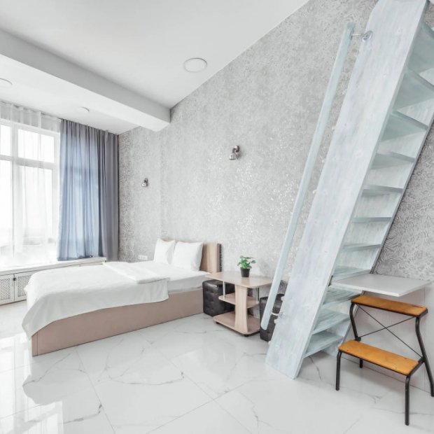 Студия Дуплекс с балконом и с красивым видом из окна