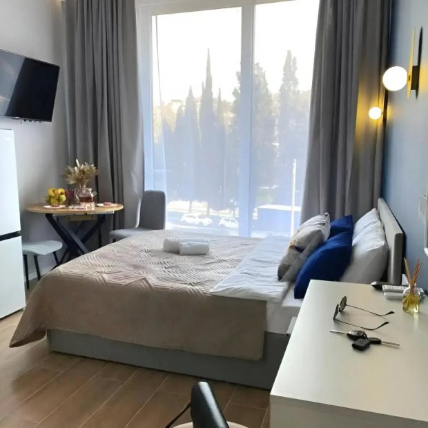 ВНИМАНИЕ При размещении от 10 суток ,одна поездка бесплатно на Красную поляну в удобное время и день на комфортабельном трансфере. Дизайнерская студия у моря.Сдаю лично, СОБСТВЕННИК.Уютная , ком…