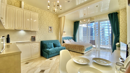 Студия с балконом и с красивым видом из окна