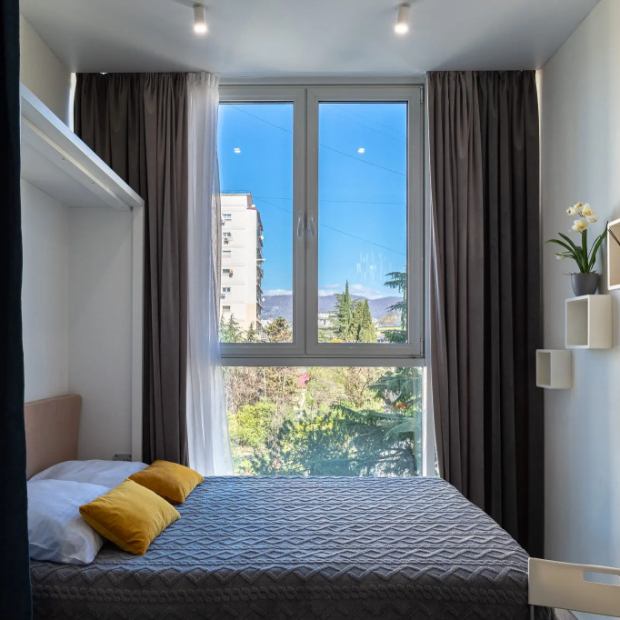 Апартаменты «ЖК Огни Сочи» располагаются в центре Сочи, в ЖК бизнес-класса «Огни Сочи». В пешей доступности находится море и набережная, а также поблизости имеется развитая инфраструктура: торговые центры, кафе, рестораны, бизнес-центры, спортивные клубы, различные медицинские учреждения. Также в пешей доступности находится главная прогулочная улица Сочи — Haвaгинская и морской порт, железнодорожный вокзал, торговый центр «Моремолл». Поблизости есть перинатальный центр, клиника «Екатерининская», университет юстиции, городская больница. Пляж «Ривьера» с развлекательной инфраструктурой находится в 2,5 км от апартаментов. Рядом есть транспортная развязка, позволяющая доехать в любую точку города, рядом с комплексом есть остановка общественного транспорта. Расстояние до ближайшего международного аэропорта Адлер-Сочи составляет 32 км. Апартаменты оснащены всем необходимым как для кратковременного, так и для длительного проживания и рассчитаны для 1-4 гостей. Размещение подходит для семей, молодых пар, а также для тех, кто находится в Сочи по делам или в командировке. Апартаменты включают в себя гостиную, совмещенную с кухней, и санузел. Имеется ЖК-телевизор, сплит-система, кровать с матрасом, диван, вместительный шкаф для одежды, цифровое ТВ, Wi-Fi 50 Мб, фен, утюг, гладильная доска, комплект махровых полотенец для каждого гостя, постельные принадлежности и стильное постельное бельё. В санузле есть тропический душ, стиральная машина, порошок для стирки, душевые и гигиенические принадлежности: шампунь, гель для душа, жидкое мыло, зубная паста и щётка, одноразовые тапочки. Имеется кухня для приготовления пищи, в том числе микроволновая печь, холодильник, электрический чайник, столовые приборы, посуда. Апартаменты оснащены электронными замками. Перед каждым заездом производится санитарная обработка помещения.