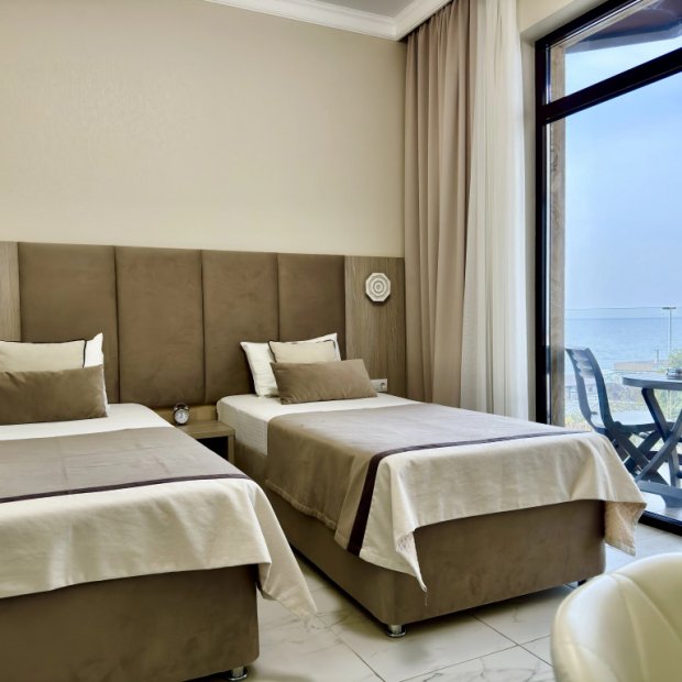 Двухместные апартаменты c 1 комнатой с балконом и с видом на море двуспальная кровать