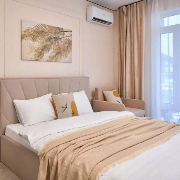 ВНИМАНИЕ При размещении от 10 суток ,одна поездка бесплатно на Красную поляну в удобное время и день на комфортабельном трансфере. Дизайнерская студия у моря.Сдаю лично, СОБСТВЕННИК.Уютная , ком…