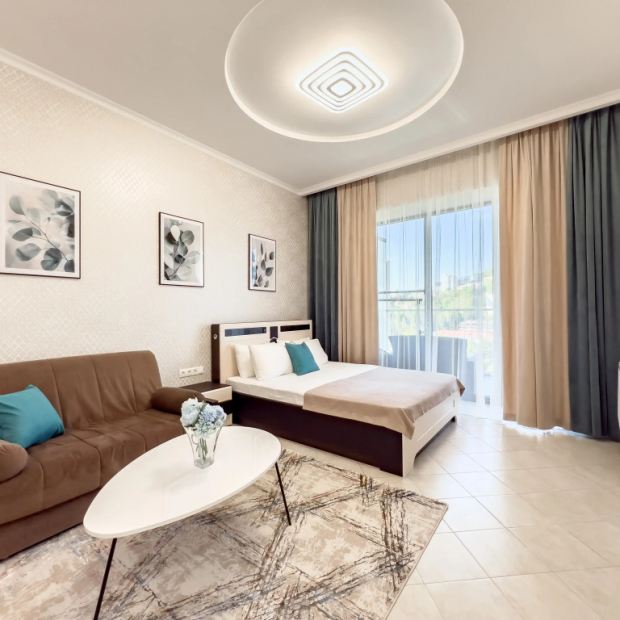 Студия с балконом и с красивым видом из окна