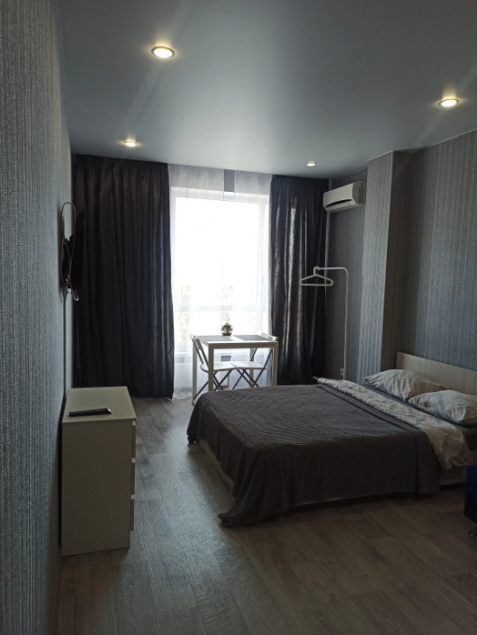 Студия с балконом и с красивым видом из окна