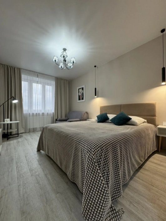 Расположена в новостройке.В шаговой доступности центральная улица Республики, ДК Строитель, Выставочный Зал.Новый дом, свежий ремонт, крытая парковка для автомобиля4 спальных места (двухспальная …