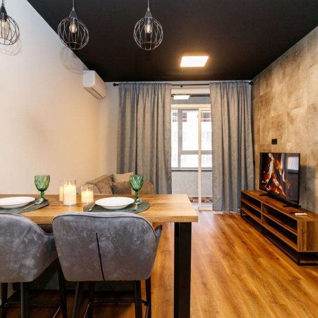 Апартаменты с 2 комнатами с балконом и с красивым видом из окна